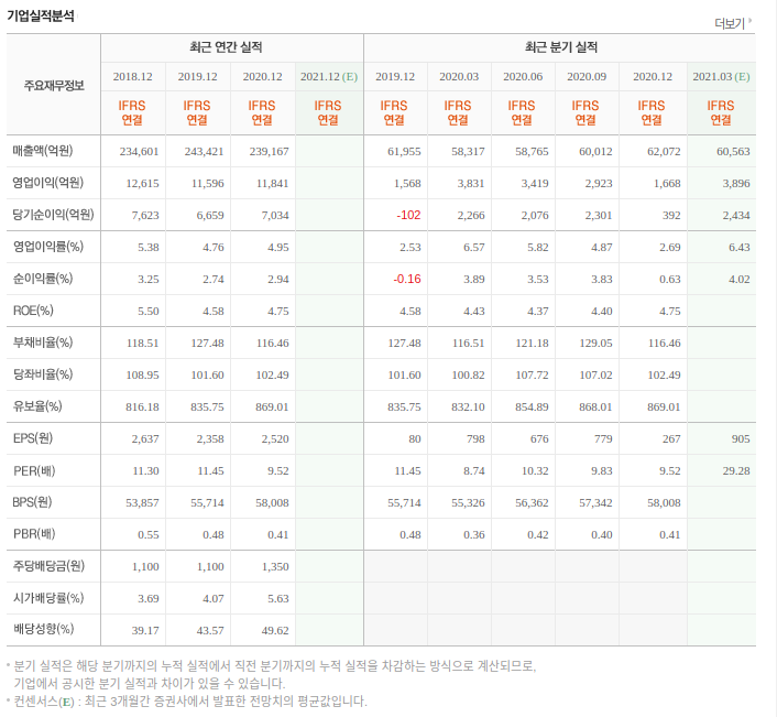 대략 연평균 7000억원 정도 이익을 내고있고, 코로나 이후로 꾸준하게 회복해주고 있다고 생각합니다.